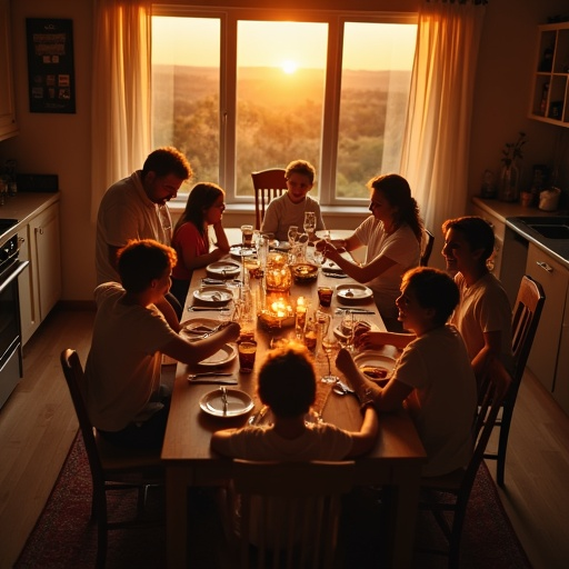 Warm Gathering: A Family Shares a Meal in Intimate Light