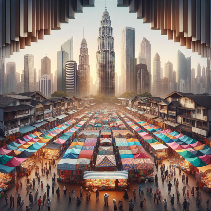 Immerse yourself in the bustling energy of a city market, where colorful stalls and lively crowds fill a narrow street, all against the backdrop of towering skyscrapers. This image captures the vibrant atmosphere and dynamic scale of urban life, offering a glimpse into the heart of the city.