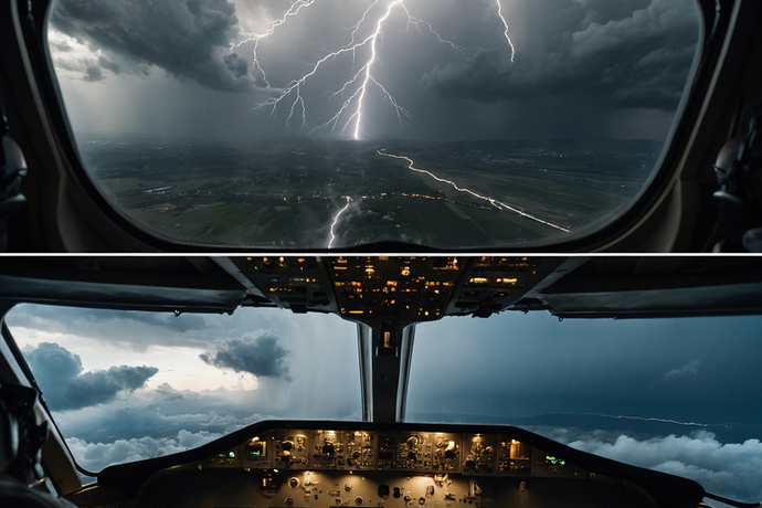 Lightning Strikes as Pilot Navigates Stormy Skies