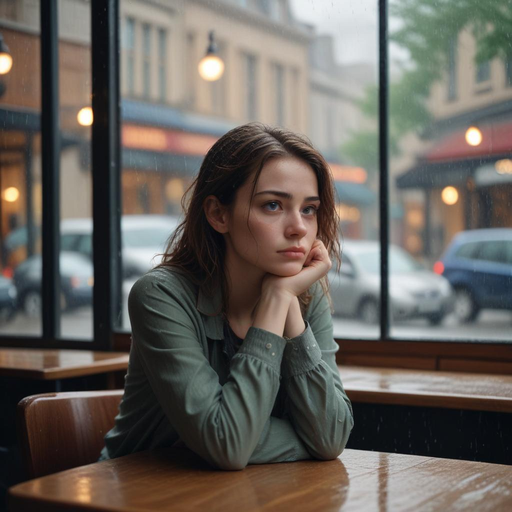 Lost in Thought: A Moment of Melancholy in a Rainy Cafe