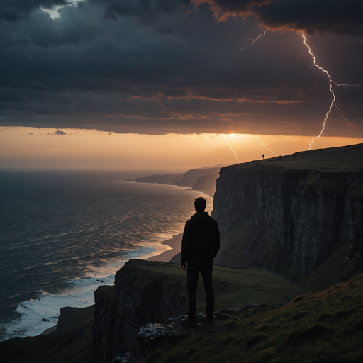 A Solitary Figure Contemplates the Fury of the Storm