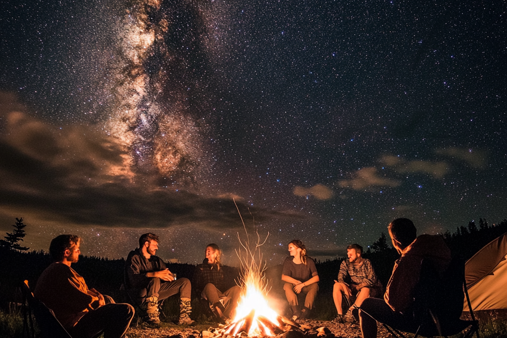 Starry Night Serenity: Friends Gather ‘Round the Campfire